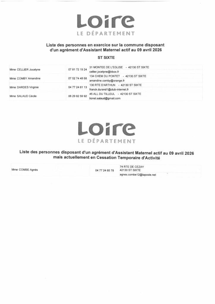Assistant(e)s maternel(le)s au 09-04-2026